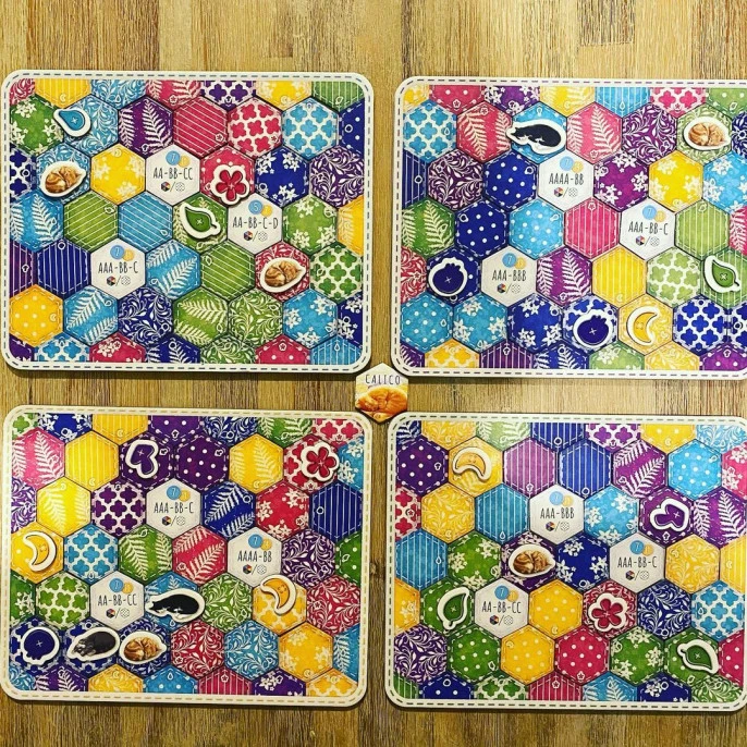 Dans Calico, les joueurs, en compétition les uns contre les autres, vont tenter de composer le plaid le plus douillet en draftant et en plaçant des tuiles de tissus de différentes couleurs et de différents motifs sur leur Plateau de quilt.