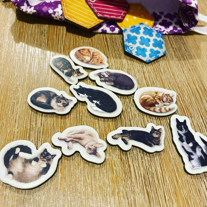 Chaque Plateau de plaid comporte 3 Objectifs de réalisation qui rapporteront des points si les prérequis sont respectés. Les joueurs vont également tenter de composer des groupes de motifs afin d’attirer les Chats les plus câlins, et d’obtenir des regroupements de couleurs sur lesquels coudre des Boutons. Le joueur qui gagnera le plus de points grâce a ses Objectifs de réalisation, ses Chats et ses Boutons l’emportera !