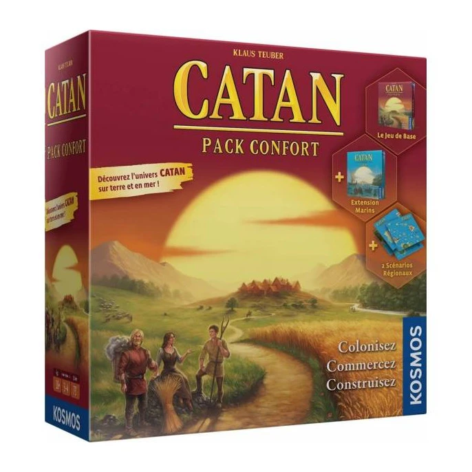 Ce pack Confort contient le jeu de base, l’extension Marins de Catan ainsi que deux scénarios exclusifs Hawaï et l’espagne (la péninsule ibérique pour être précis)