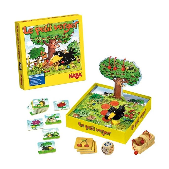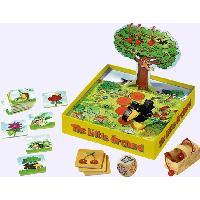 Dans le jeu Le Petit Verger, les enfants jouent ensemble pour cueillir toutes les cerises avant que le corbeau atteigne l’arbre.