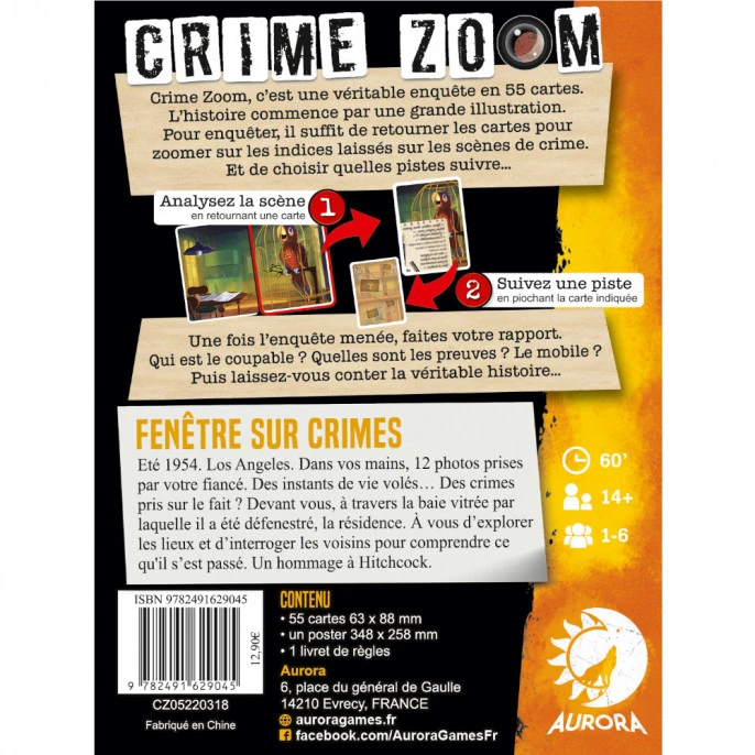 Crime Zoom vous emmène cette fois-ci à Los Angeles en 1954. Votre ami George Hopley est à l’hôpital. La police ne sait s’il a été défenestré ou s’il s’est jeté lui-même. Il faut venir enquêter. Et c’est Billy, le jeune coursier qui vous fournira les éléments. Les dernières photos prises par George de sa fenêtre, qui vous donneront peut être les réponses à vos questions.