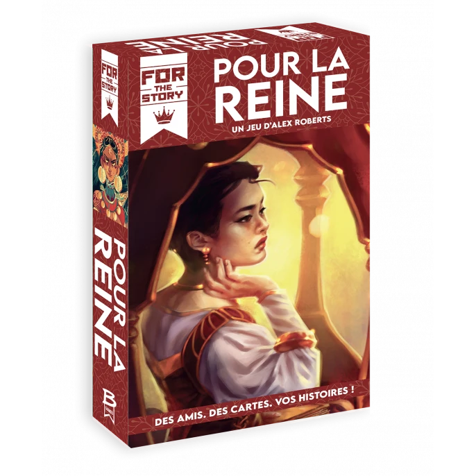 Choisissez votre Reine parmi les illustrations proposées dans la boîte – ou imaginez la vôtre en vous fiant à votre imagination – puis laissez-vous guider en répondant aux cartes Question afin de tisser ensemble un récit empli d’amour et d’héroïsme, mais aussi de trahisons et de doutes !