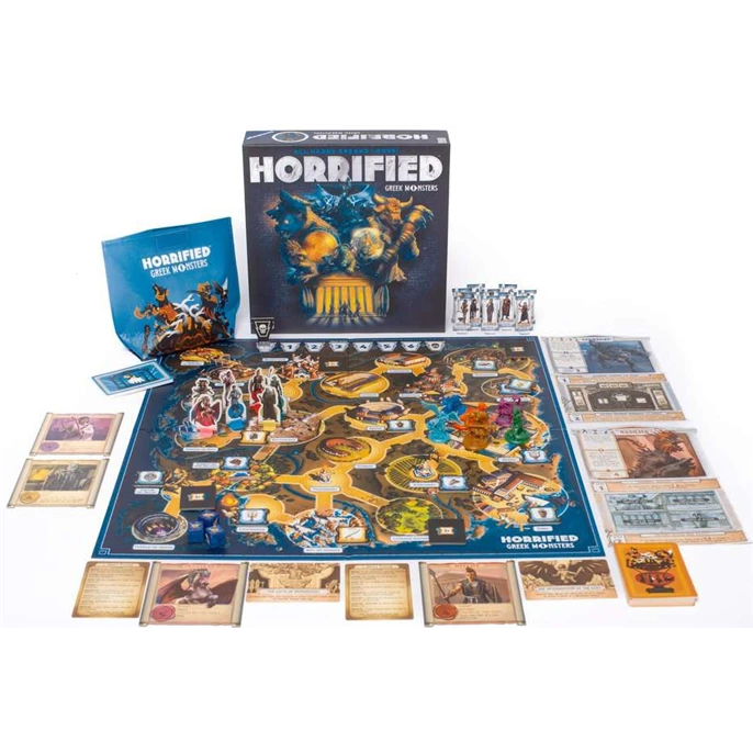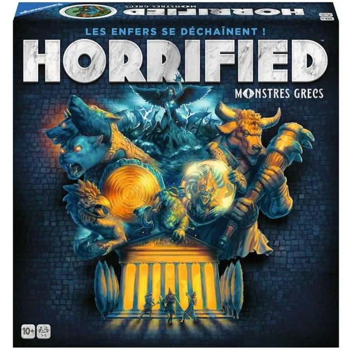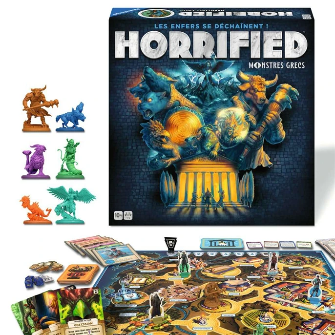 Dans Horrified Monstres Grecs vous incarnez des Avatars et les dieux ont fait appel Ă vous pour vaincre les monstres s’Ă©tant Ă©chappĂ©s de la boĂ®te de Pandore. Vous allez devoir coopĂ©rer pour neutraliser la MĂ©duse, le Cerbère, le Minotaure, la Chimère, la Sirène ou encore le Basilic ! Chaque monstre a ses propres faiblesses et sa propre manière d’ĂŞtre vaincu ! Choisissez les monstres que vous voulez affronter pour ajuster la difficultĂ© du jeu.Parcourez l’Ă®le de l’Élysium pour rĂ©cupĂ©rer des objets et les utiliser pour vaincre les monstres sans vous faire attraper et tuer, sauvez Ă©galement le plus de lĂ©gendes possibles. Obtenez des faveurs de la part des dieux et subissez le hasard des dĂ©s. Parviendrez-vous Ă sauver les personnages lĂ©gendaires et Ă sauver l’Ă®le avant que la terreur ne vous envahisse ? Pour ce faire, coopĂ©rez bien et rĂ©flĂ©chissez ensemble Ă la meilleure manière de vaincre ces monstres mythiques.