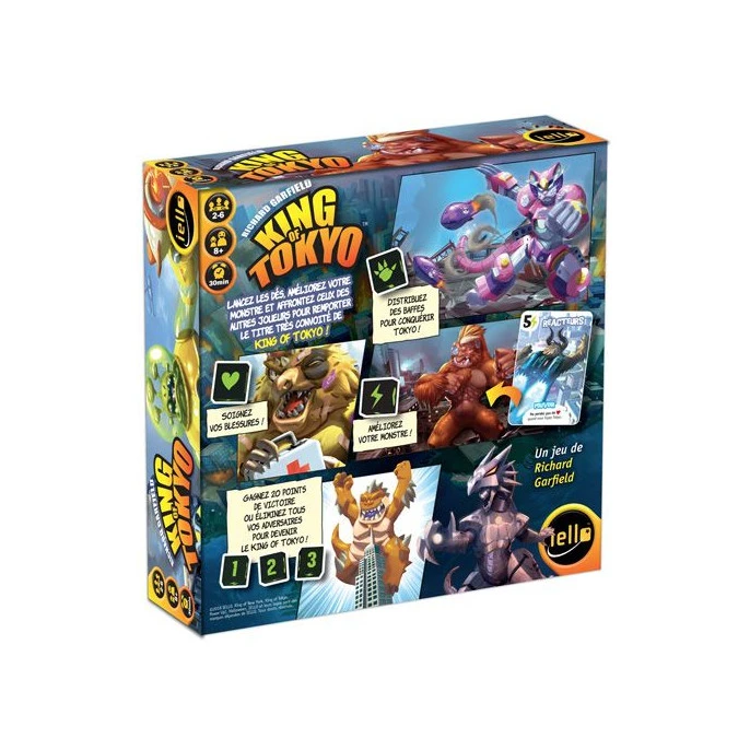 Dans King of Tokyo, vous incarnez un énorme monstre qui tentera de conquérir Tokyo ou de tuer tous ses adversaires.