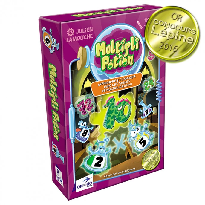 Dans Multipli Potion, vous incarnez un magicien dont le but est d’être le premier à capturer 5 monstres adverses. Pour cela, multipliez les nombres inscrits sur vos potions magiques pour obtenir le résultat correspondant à la valeur d’un monstre ennemi.