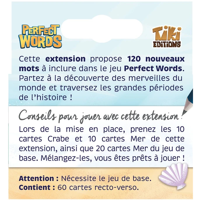 Cette extension propose 120 nouveaux mots à inclure dans le jeu Perfect Words. Partez à la découverte des merveilles du monde et traversez les grandes périodes de l’histoire.