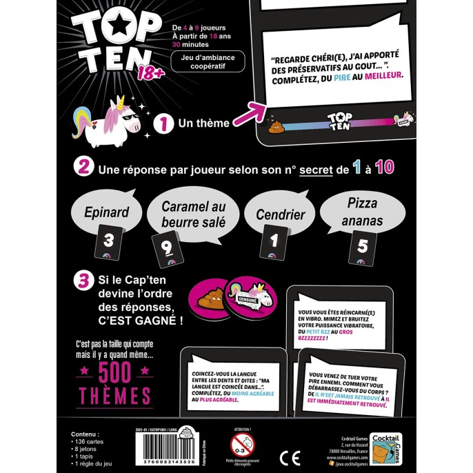 Ce jeu est la version pour adultes uniquement du célèbre jeu Top Ten ! Le principe est le même mais les thèmes sont plus pimentés !