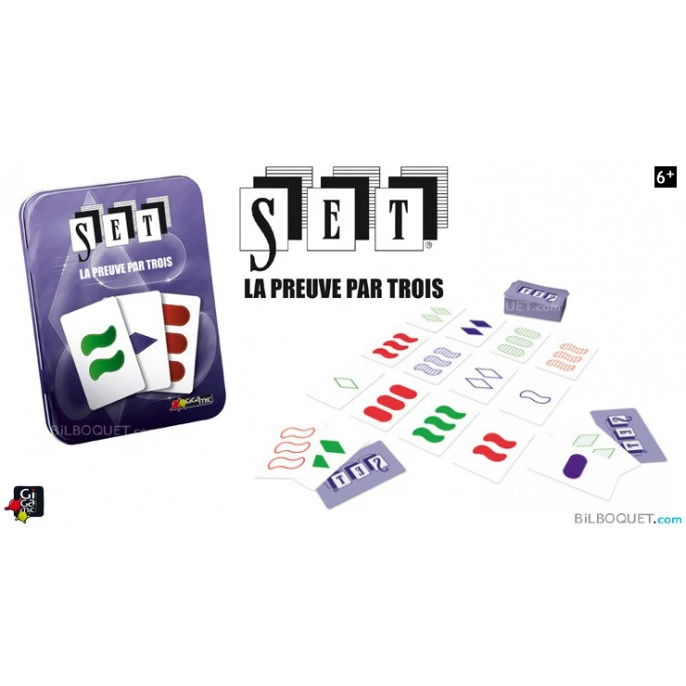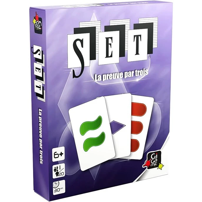 Rapidité et logique pour associer 3 cartes parmi 12 exposées qui sont soit toutes pareilles soit toutes différentes sur chacune des 4 caractéristiques formant les cartes