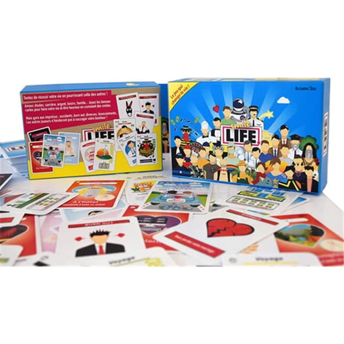 Smile life est un jeu de cartes dans lequel vous allez devoir faire et réussir votre vie.