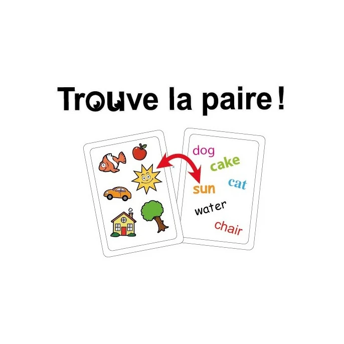 Jeu proche de Dobble dans lequel il faut trouver une paire formée du dessin avecson nom en anglais.