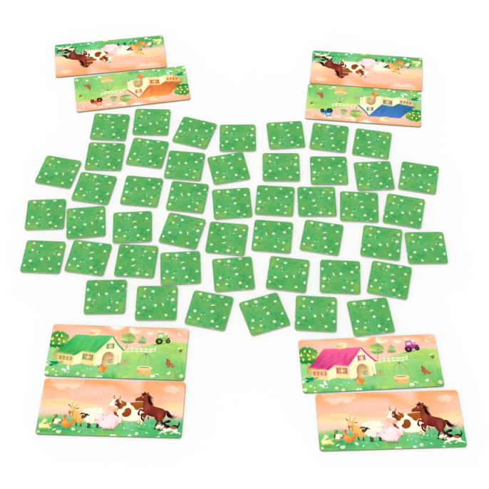 Tous à la ferme est un jeu plein de poésie, qui fait appel à la mémoire, la logique et la reconnaissance des animaux de la ferme, pour enfants dès 4 ans.